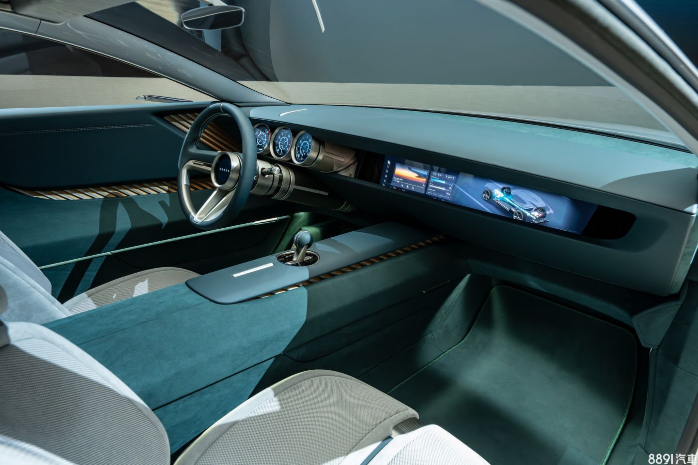 內裝格局有夠簡潔,全水平的儀錶臺、內嵌式多媒體,搭配短截排檔桿,秉持品牌一貫的「less is more」的設計思維。動力方面,概念車搭載雙轉子渦輪引擎,結合電動馬達組成PHEV插電式複合動力,綜效馬力達510hp,具備160km純電續航與超過800km的綜效行駛距離,兼具強勁動能與長程從容的操控本質。