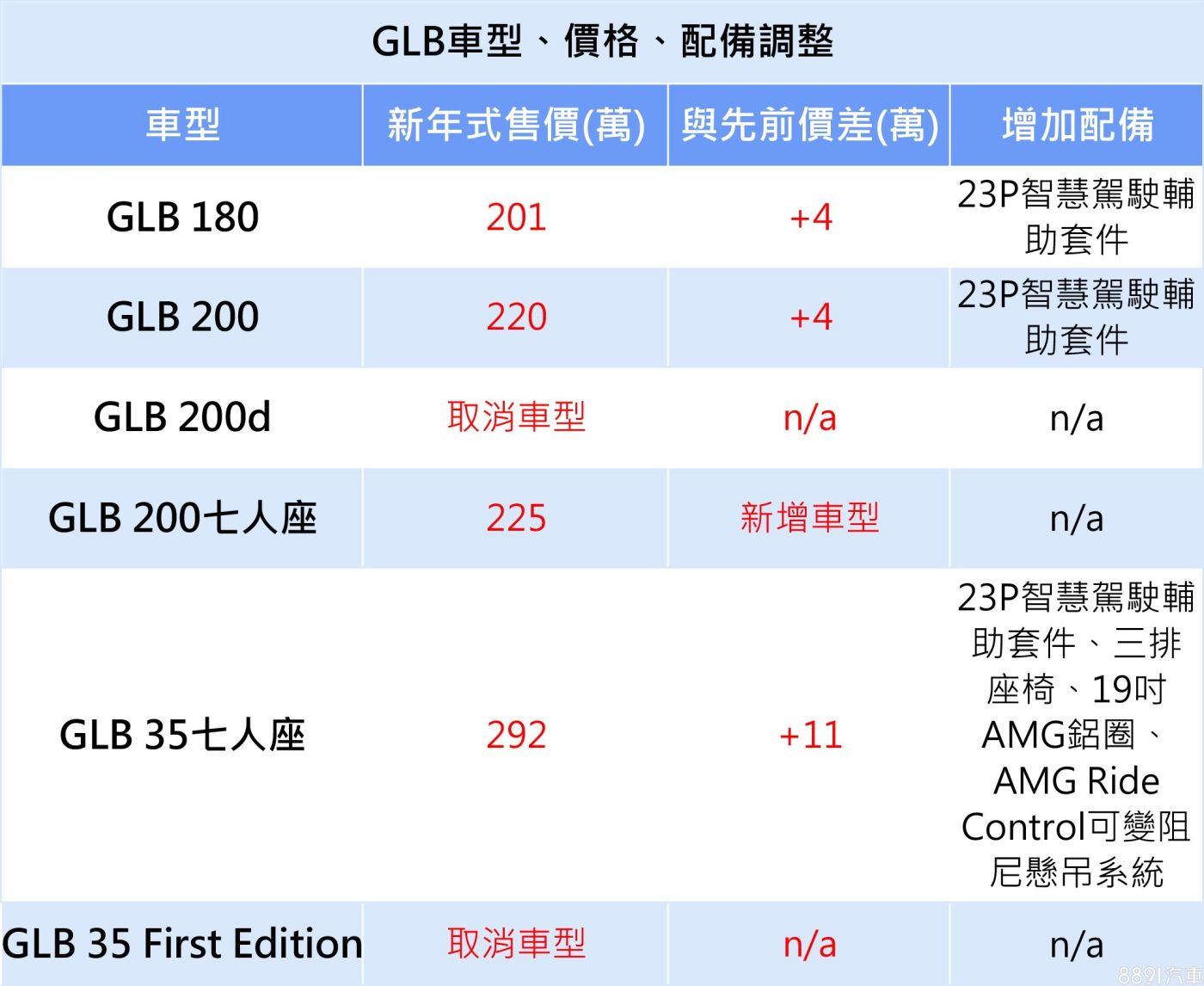 此外,GLB車系若想要三排配置,不再只能透過選配,新年式追加了GLB 200七人座車型,GLB 35 4Matic也將第三排列為標配。