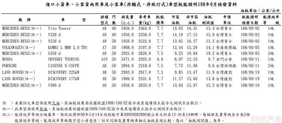 許多近期上市的進口新車也於9月完成測試,包含Mercedes-Benz GLC、CLA、V-Class與A-Class Sedan,BMW X1與320i,Porsche新911與Cayenne Coupe,小改款Mini Clubman等等。