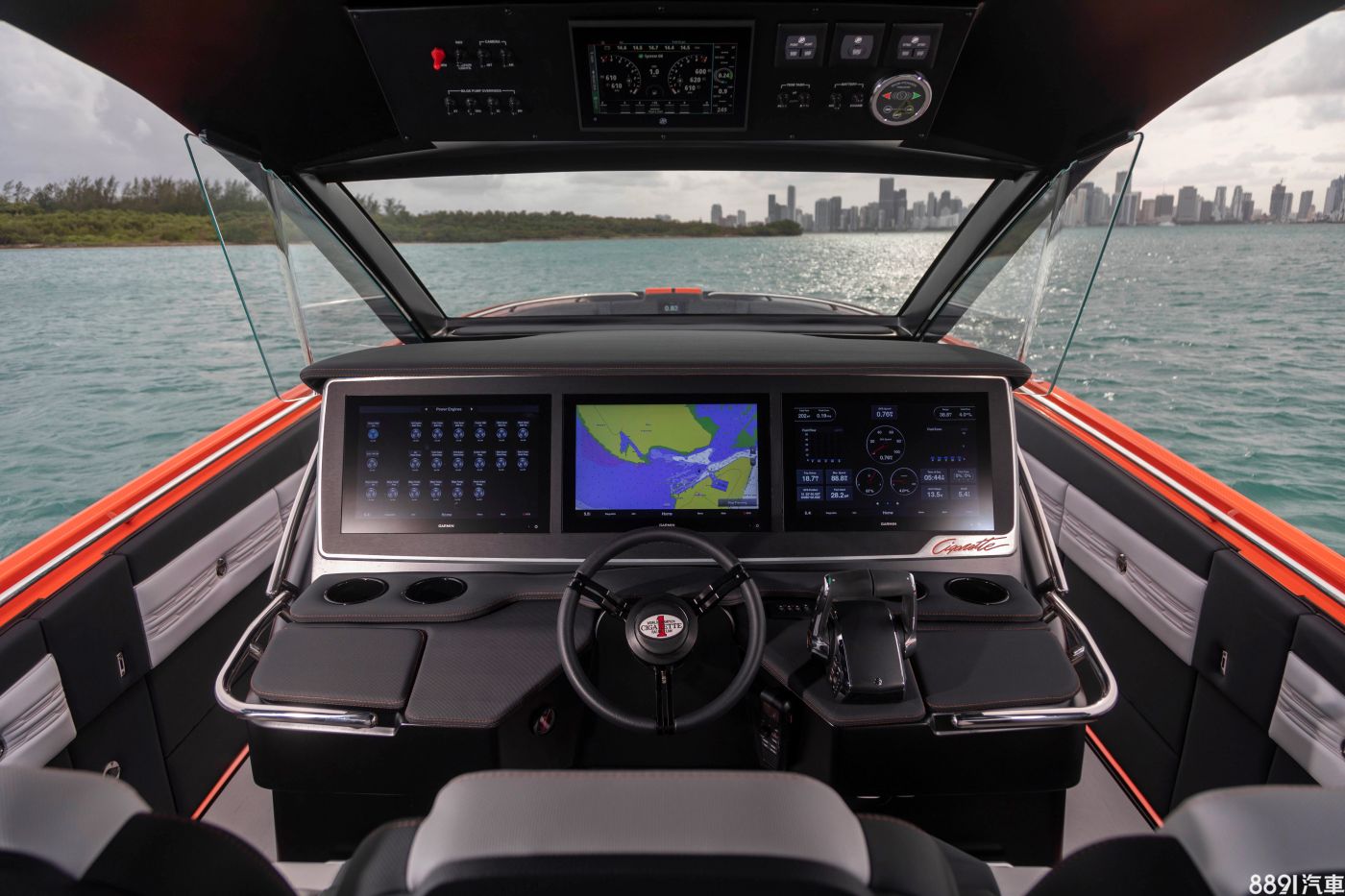 駕駛艙以三個Garmin 8617觸控螢幕為主架構,具備耐熱、抗反光、防指紋的表面塗層,幾乎採觸控的操作方式也更直覺便利,周圍則採用皮質搭配橘色縫線,符合整體的配色主題。
