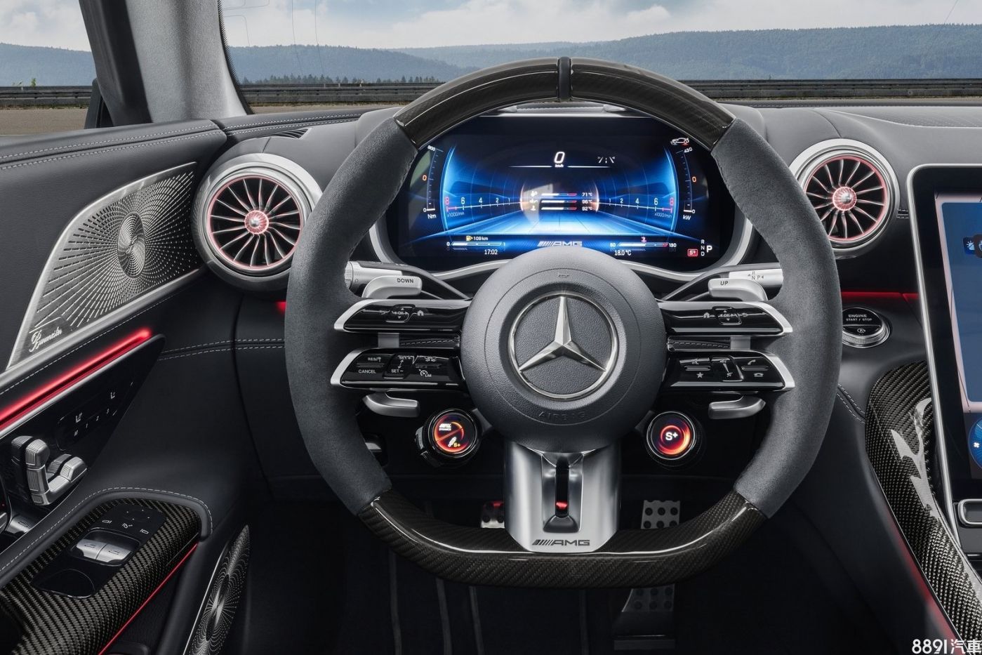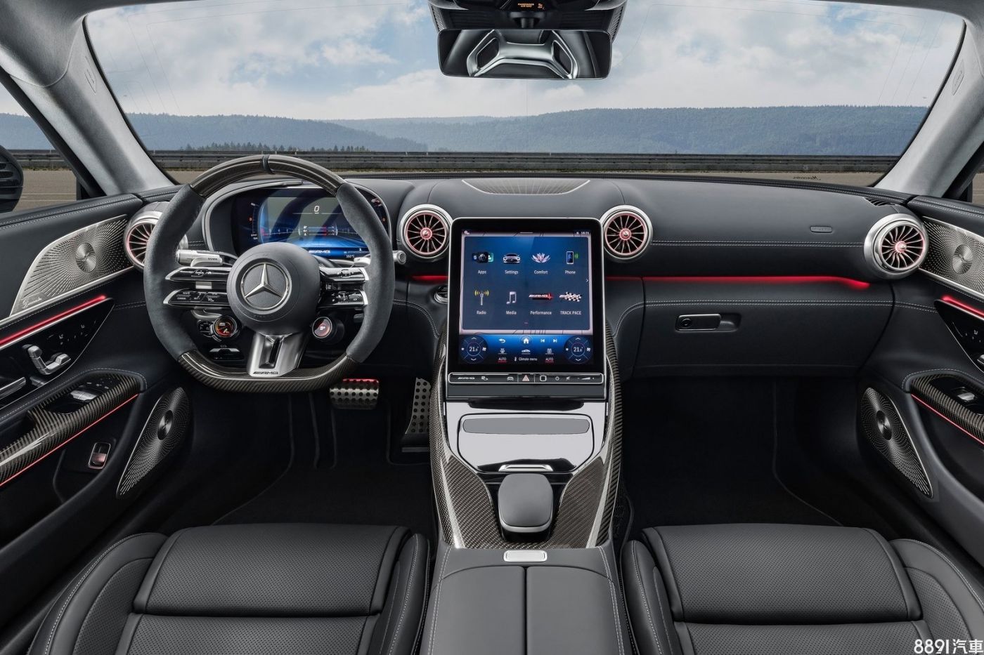 內裝部分與SL-Class相仿,採用12.3吋數位儀錶+11.9吋直立儀錶配置,MBUX系統內建AMG Performance、AMG Track Pace專屬選單,內建單圈計時、加速測試等功能,也可監測當下四輪驅動比例、後輪轉向角度,提升駕駛樂趣。
