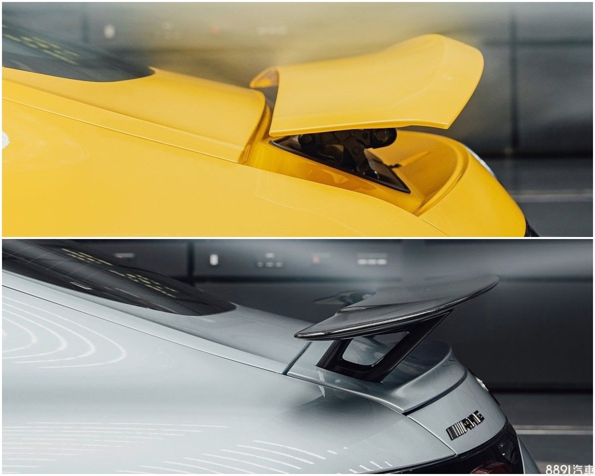 標準配置主動式尾翼,可以在時速80km/h以上主動打開,依據不同時速、動態,尾翼共有5種角度呈現;也可以另外選配空氣力學套件,如圖片中的固定式,看起來性能味更濃厚。