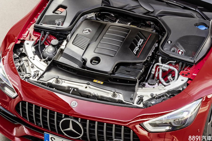 不同於現行AMG 43陣容的V6心臟,四門GT 43在動力配置上沿用GT 53的3.0升直列六缸渦輪引擎,然而調降輸出至367hp/51kgm。雖說數據有著68hp/2kgm的降幅,但GT 43的調校讓最大馬力轉速自6100rpm提早至5500rpm湧現。
