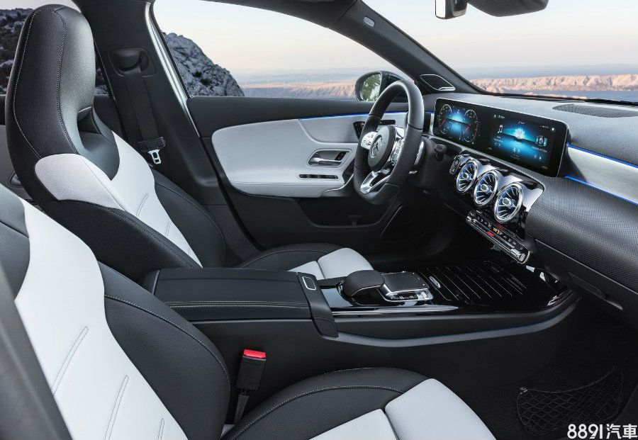 由國外捕獲的新一代B-Class偽裝測試車內裝照清晰可見,新車車室與新A-Class(下圖)幾乎相同,包含獲得簡化的中控台格局、中央鞍座、冷氣出風口造型、多媒體系統介面等,最顯眼的莫過於全液晶數位雙螢幕系統。