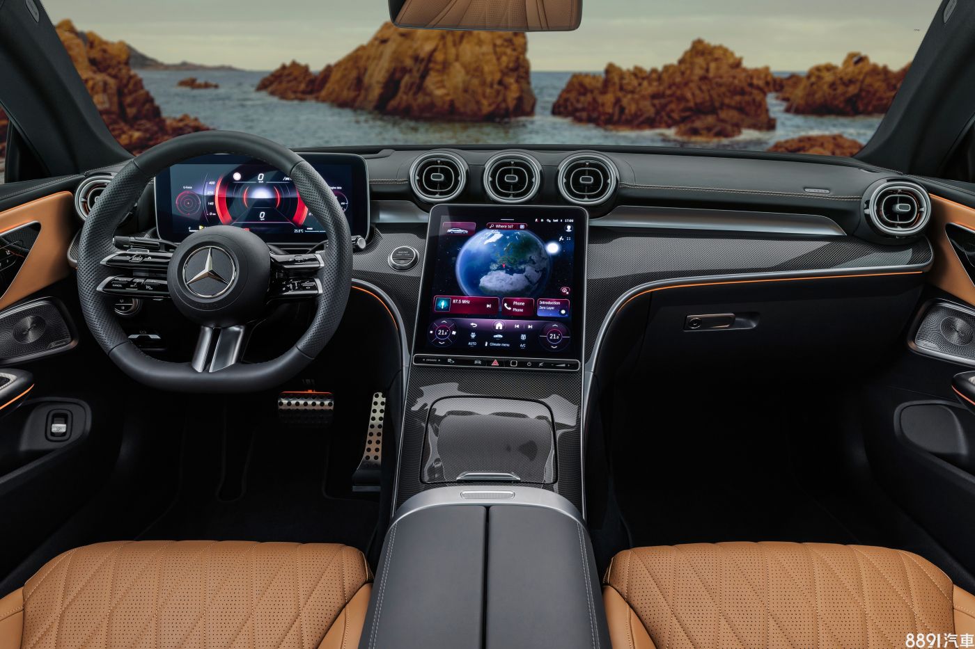 雖說外觀辨識性不低,不過座艙格局則比照C-Class設計,風格簡潔、採駕駛導向布局,配備12.3吋數位儀錶和11.9吋觸控多媒體系統,後者整合空調控制面板,搭載的新版MBUX可支援遊戲、網頁瀏覽等娛樂功能,內裝飾板則有亮黑、木紋或碳纖維等造型可搭配。