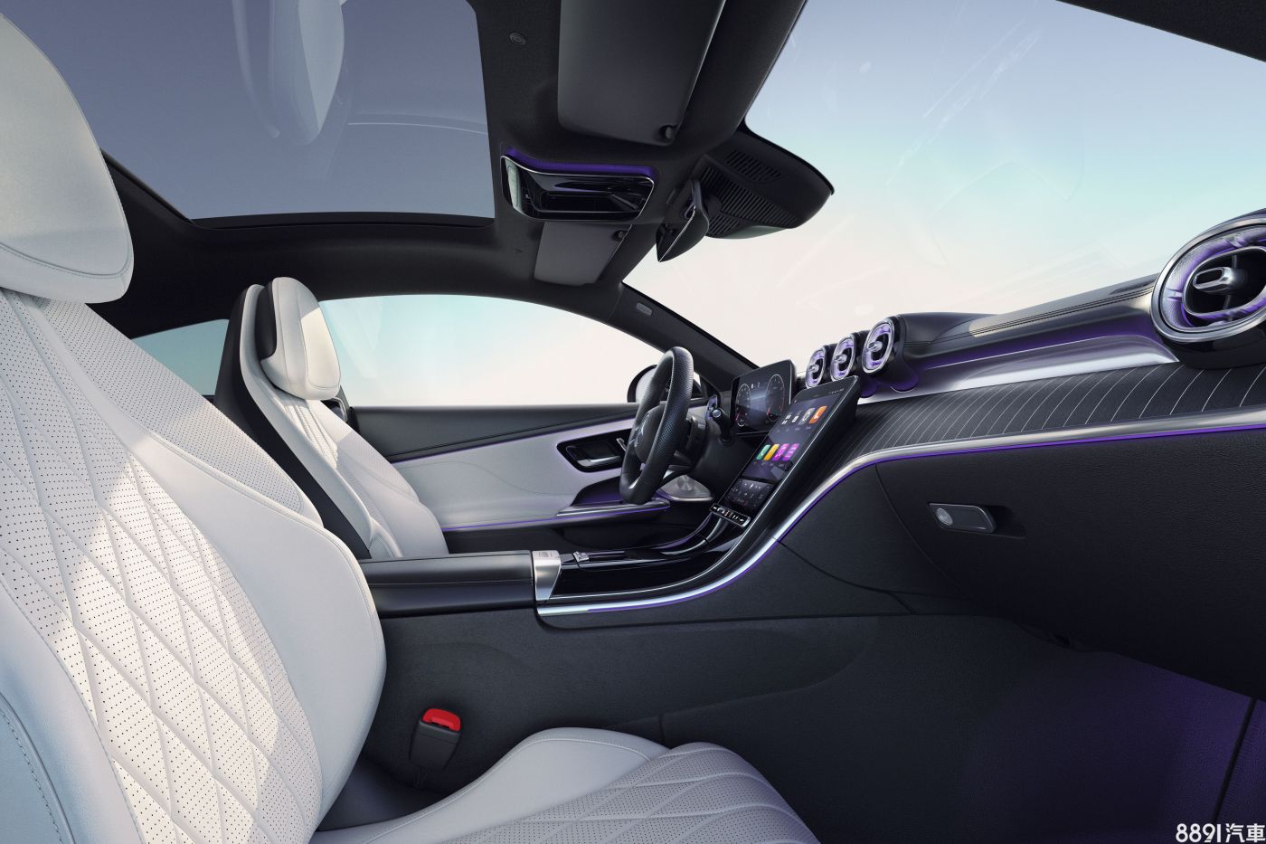 座艙則採4座配置,雙前座標配跑車化座椅,提供真皮或人造麂皮等包覆質料和多種配色可搭配。多虧車身尺碼放大,原廠宣稱CLE較前代C-Class Coupe擁有更充裕的乘坐空間,而前排座椅可前傾方便後排乘客進出,前傾釋放把手則以Nappa真皮皮帶取代以往塑膠拉桿。