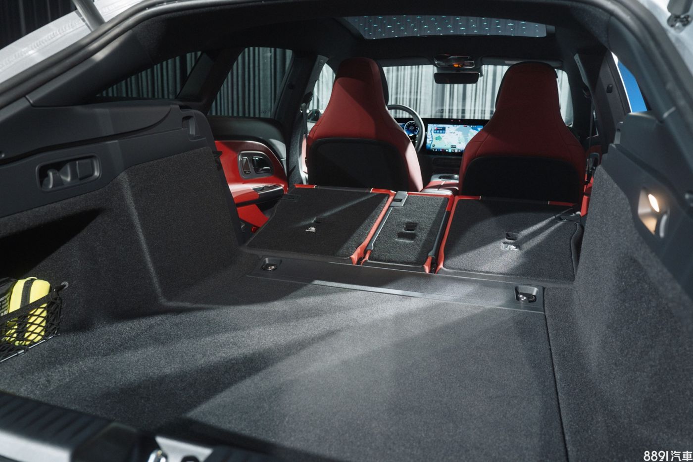 有別房車版尾廂只有405L,新一代CLA旅行車的車格,也帶來更寬裕的載物空間,在標準5座配置下即具455L水準,並能在後排傾倒後擴增為1290L。此外,與四門車型相同,純電CLA Shooting Brake車頭另有101L置物空間可運用。