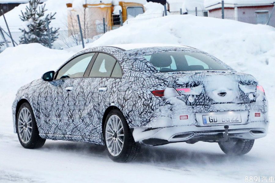 相較於過去A-Class Sedan的偽裝照,新一代CLA輪廓更趨流線,像小一號的CLS,並融入了些許AMG GT的設計元素,如圓角梯形的水箱護罩和設置於頭燈頂部的LED日行燈,讓新CLA更帶兇悍殺氣。由於車尾不自然的突起,估計貼紙下另安裝有偽裝鈑件,而自鈑件縫推測CLA車尾應會接近CLS採下垂式設計。