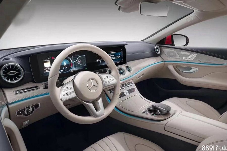 車室沿襲家族化格局,大量皮革與木紋飾板強化整體質感,配置新式樣三輻式多功能方向盤,並導入全數位儀表、環艙照明系統等,大幅增加科技感。