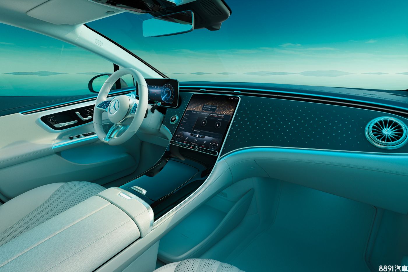 流出的新E-Class儀表台造型與EQE雷同,但造型窄胖的中控觸控螢幕似乎並未採用上圖EQE與中船相整合的設計,而是獨立附掛於儀錶台上,不過橫貫座艙的大面積儀表飾板,也暗示新E-Class有望開放三螢幕儀表台的Hyperscreen作為選配項目。