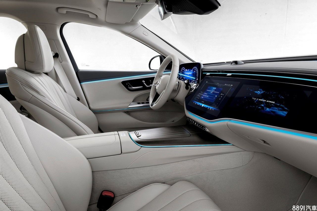 座椅規格視車型而異,E 200標配皮質標準座椅,雙前座均可記憶和加熱;中階款配合AMG-Line套件,是唯一標配跑車化雙前座和平底方向盤的車型,椅面採皮質/人造麂皮混拼包覆。頂規則換上真皮座椅,雙前座還新增通風功能。