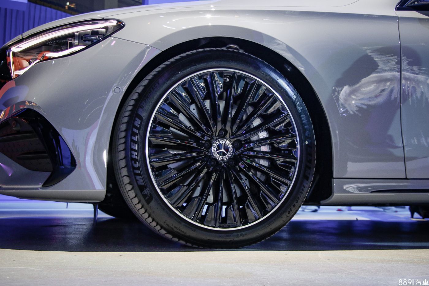 入門標配18吋五輻式鋁圈,中階及頂規升級19吋,展示款因為是認證車的關係,所以選配了20吋AMG亮黑多輻式鋁圈,配胎則為米其林e-Primacy節能胎,主打靜肅性和低滾動阻力,尺寸前245/40R20、後275/35R20。