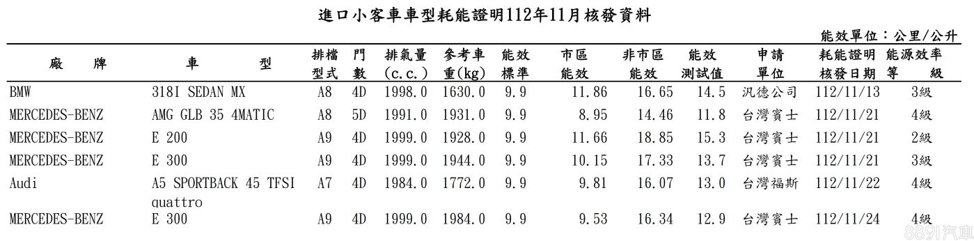 甫於日前(12/7)正式在台上市的賓士大改款E-Class,揭曉了各車型的油耗數據,E 200及E 300動力統一搭載2.0升渦輪+48V輕油電,前者測得平均油耗為15.3km/L,後者則依車型繳出12.9~13.7km/L平均油耗。