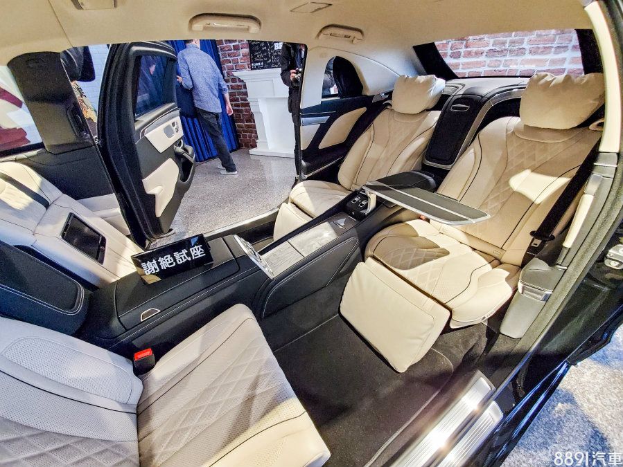 後座包含電動隔屏、對坐四張座椅、後座螢幕、雙區音響系統等都沒少,畢竟是為層峰客群打造的行動旗艦,採用豪華、舒適且適合商務會談的座艙設計。