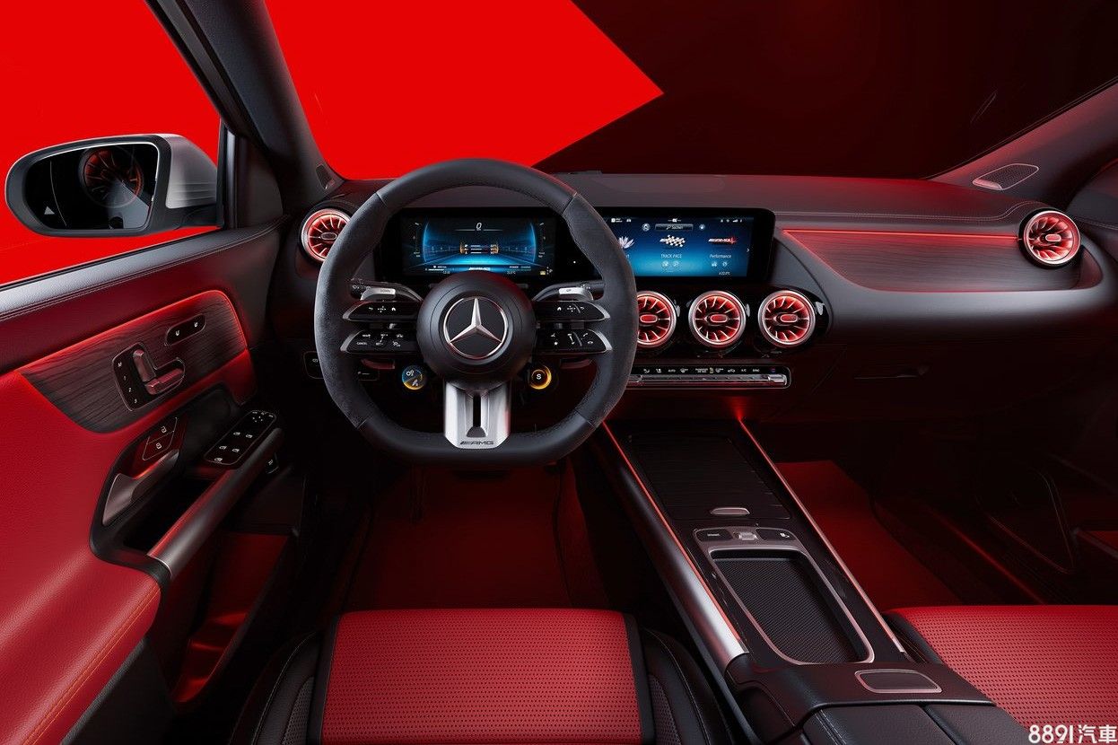 AMG GLA 35性能車型亦同步登場,外觀重點在於換上AMG式樣直瀑式水箱護罩,搭配更為立體的保桿造型,並標配19吋AMG式樣鋁圈與多光束智慧型LED頭燈。