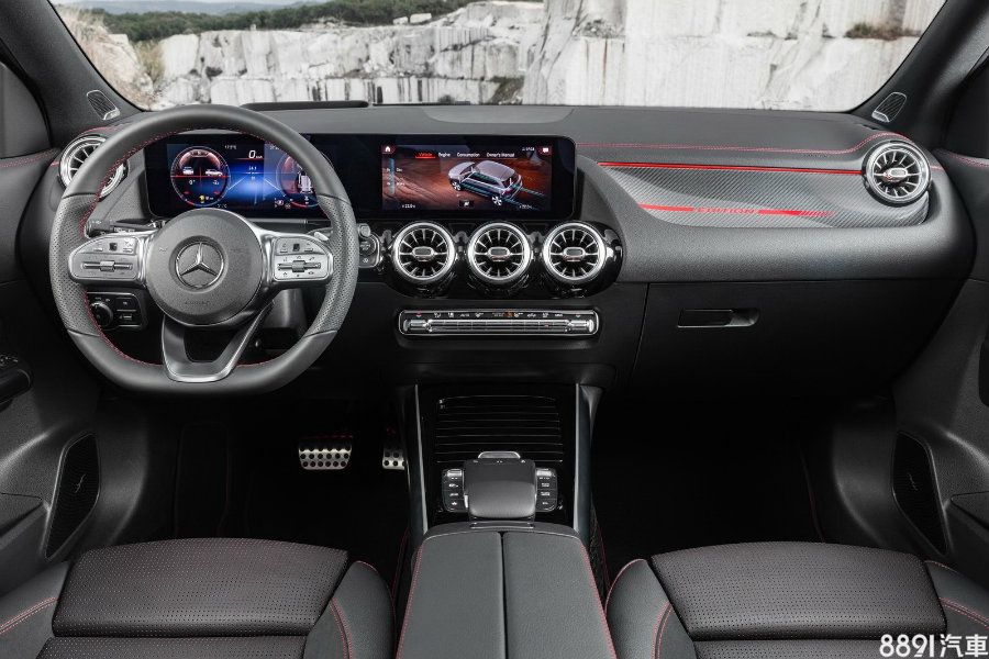車室比照包含新A-Class、GLB等辦理,包含獲得簡化的中控台格局及空調介面、以渦輪為設計概念的冷氣出風口造型等。