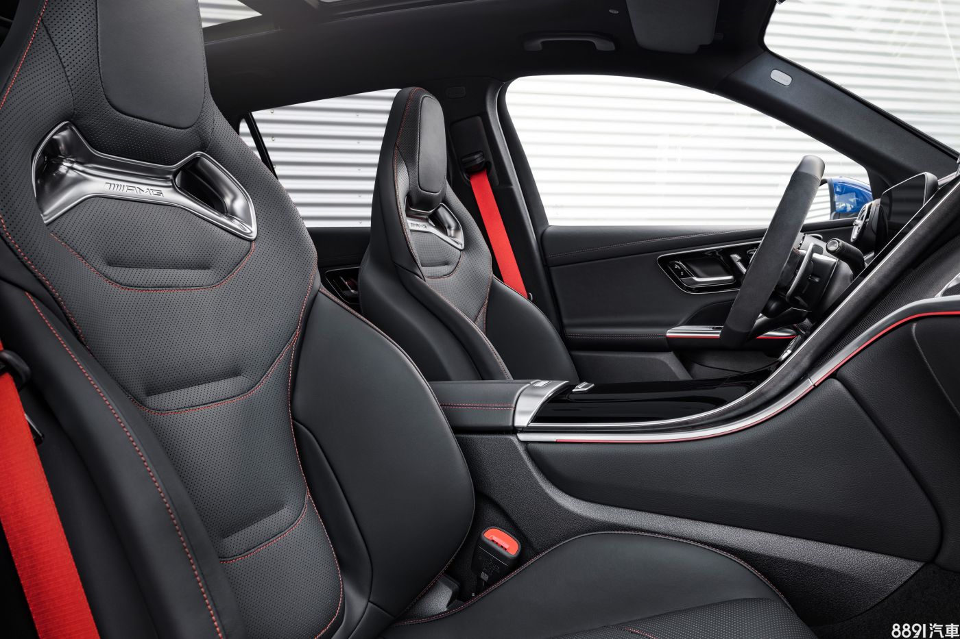 座椅標配皮質和人造麂皮混拼包覆,但另有全真皮或全Nappa真皮的椅面材質可加價升級。座椅除了標配款外,也有圖中造型更競技風的AMG Performance跑車座椅作為選配項目提供。