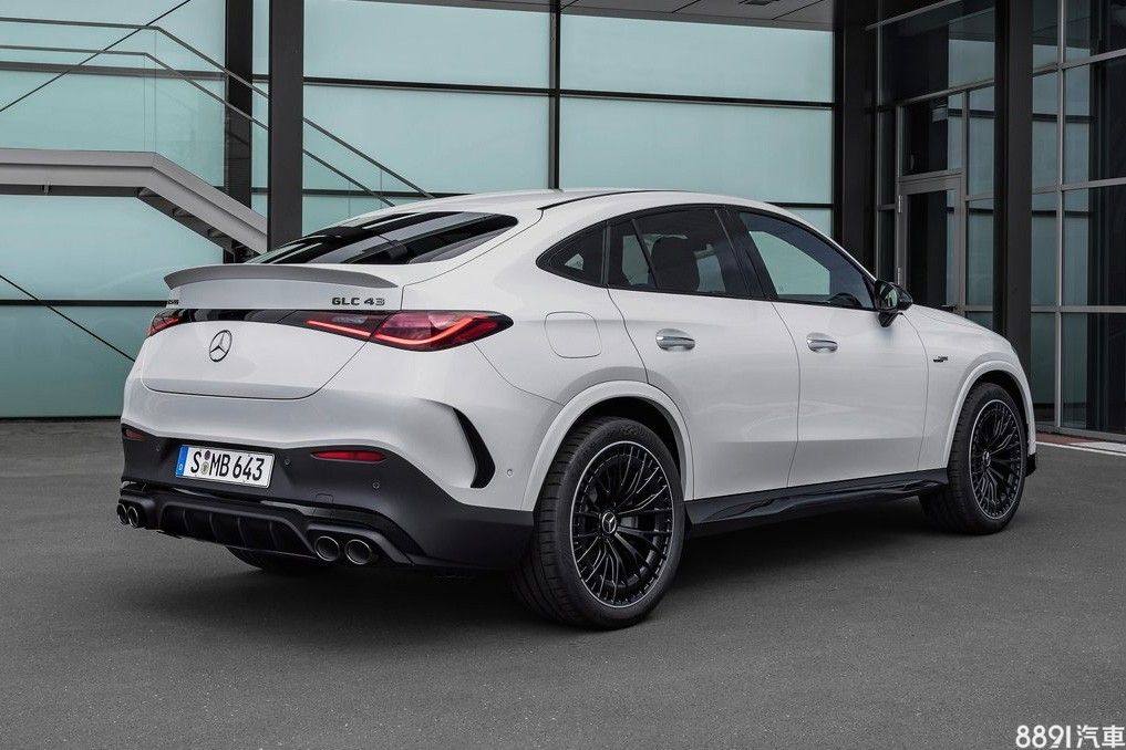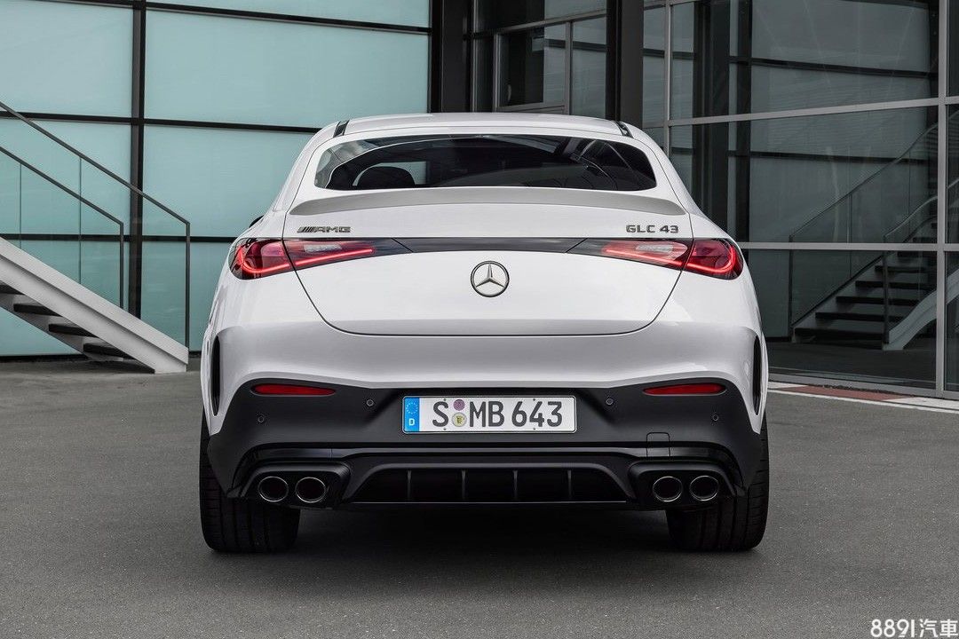 AMG版本尾部的鴨尾造型更突出,左右進氣孔也加入黑色飾板點綴,後保除了有極具張力的分流器設定外,GLC 43 Coupe的尾管亦改採左右四出圓管造型,頂規的GLC 63 Coupe則是四角形尾管樣式。