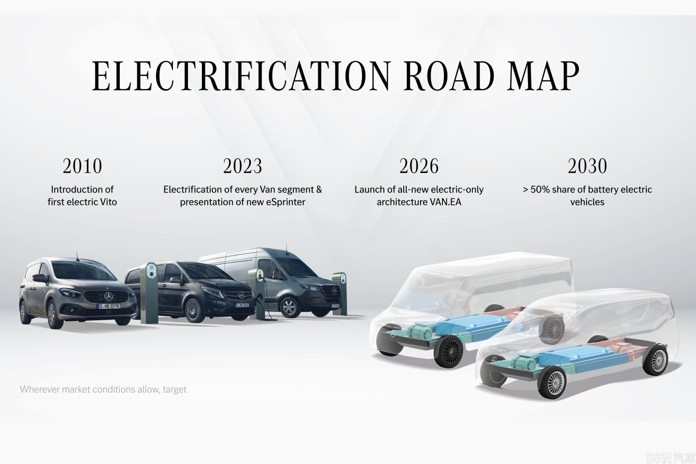 目前品牌輕商車款包含Citan/T-Class、Vito/V-Class和Sprinter等車系,目前在燃油車型外,均有供應純電版本,主要針對部分歐洲市場販售。但在VAN.EA的導入後,品牌燃油輕商將逐步停售,讓車系帶往純電化發展。