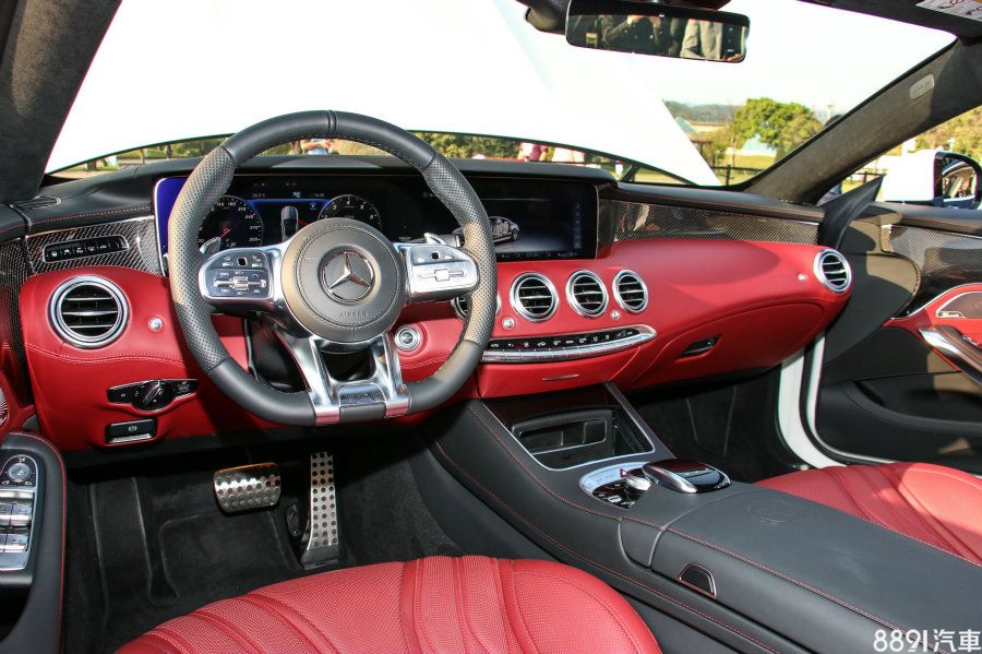 S63 Coupe的座艙因碳纖維飾板多了戰鬥氣息,平底式方向盤則兼顧造型與實際操駕的握感。