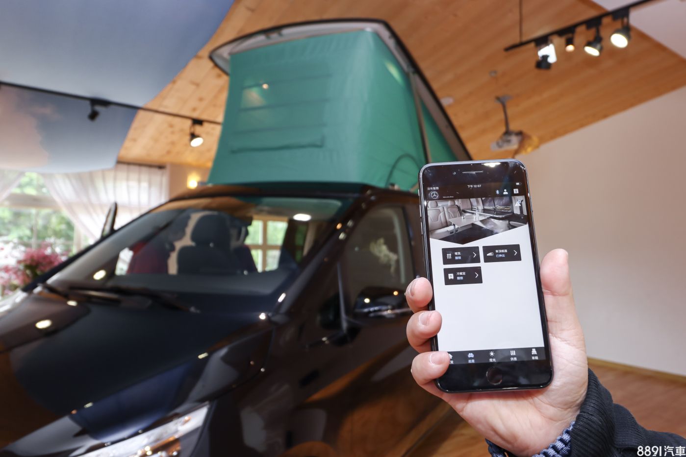 除了可從中央螢幕調整車頂上掀高度外,亦可透過Marco Polo專屬的MBAC智能遙控功能,從手機控制車頂啟閉,如此便能從車外操作,肉眼可見上方有無障礙物也比較安心,另外像是冰箱製冷、燈光明暗、暖氣定時等功能也可由手機設定。