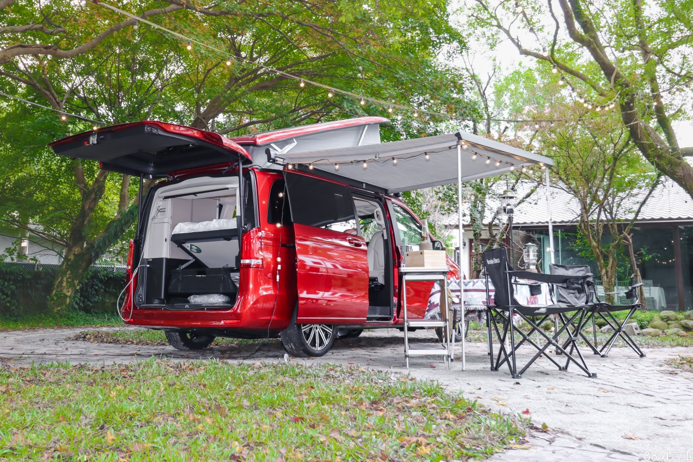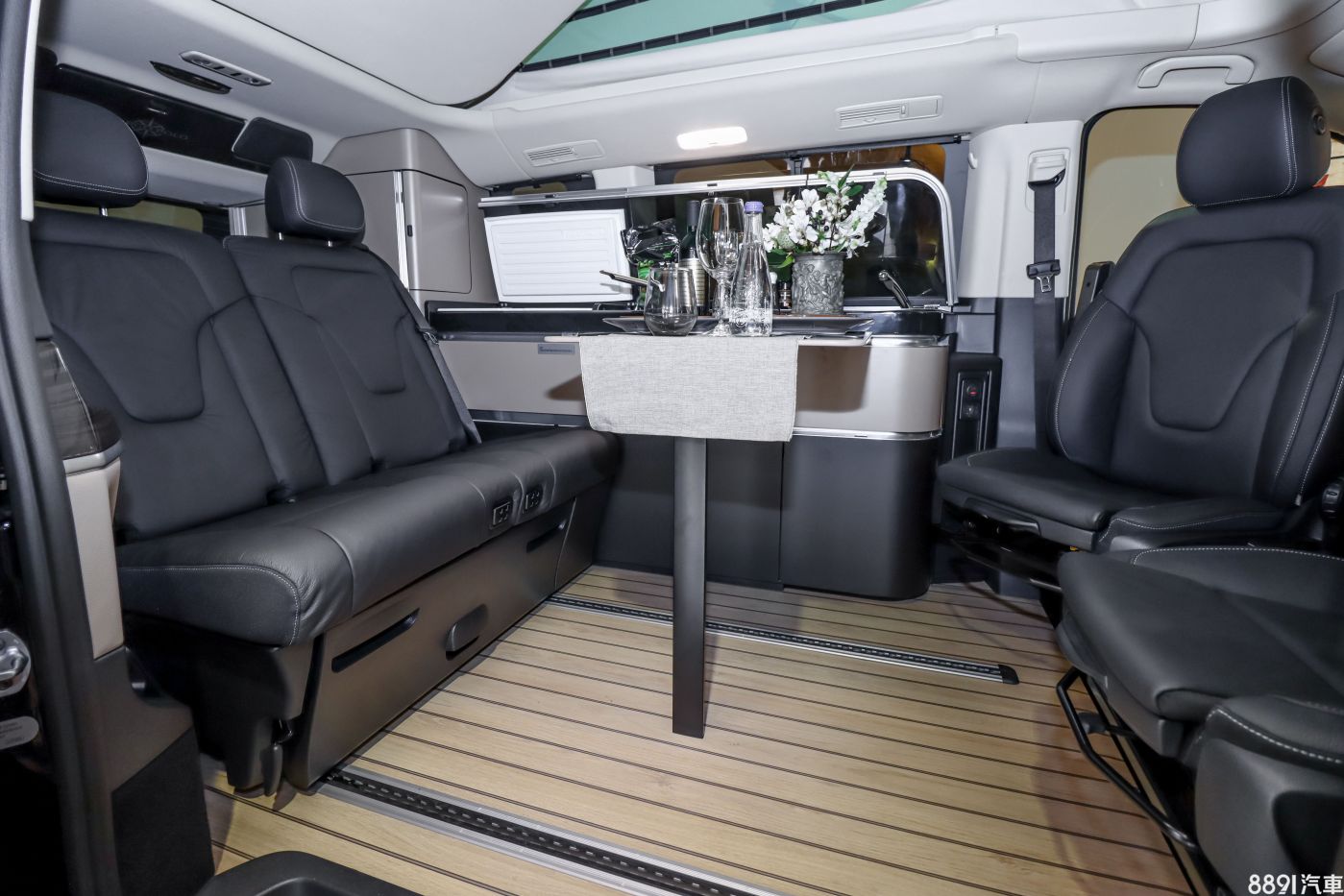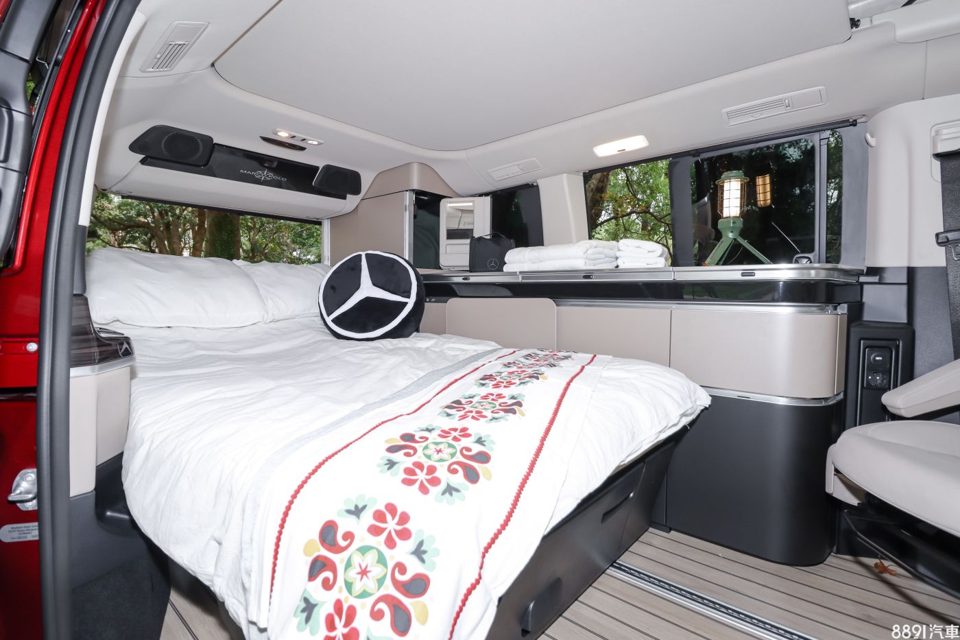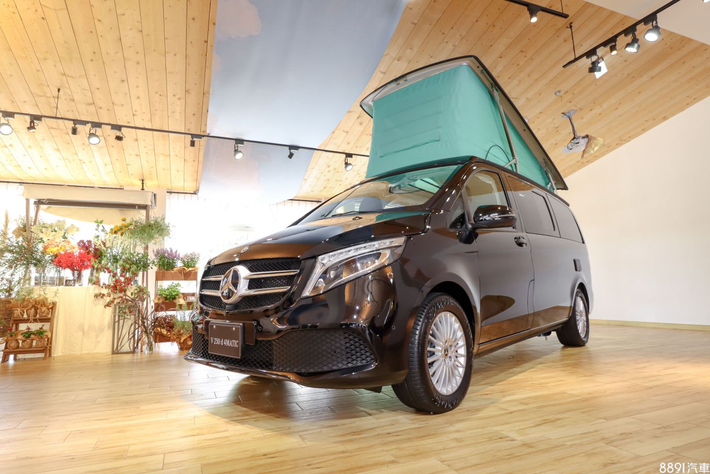 以V-Class為基礎所衍生的露營車Marco Polo,基本上車頭、尾都維持V-Class的樣貌,重點在於車頂可以上掀,搭配伸縮的側邊帳,建構出「兩房一廳」的格局,走到哪玩到哪,堪稱移動小套房,若想外觀帥氣一點,原廠另供AMG Line的選擇。