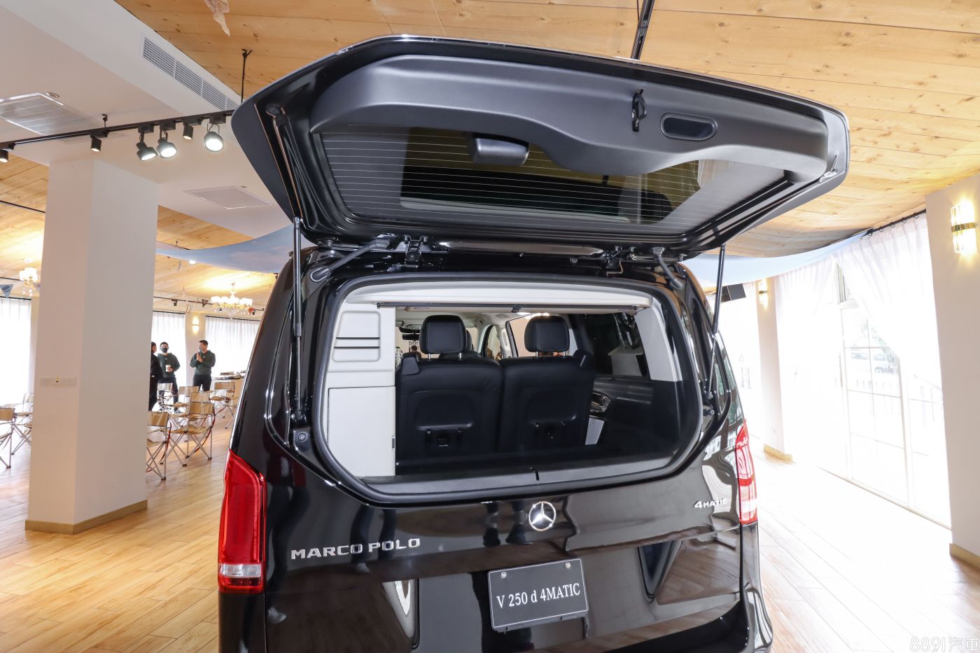 右側滑門、尾門均採電動啟閉,尾門另設計有可開式玻璃,增添取物時的便利性。