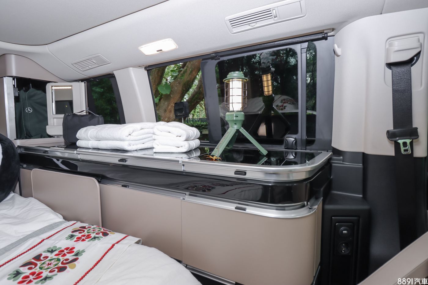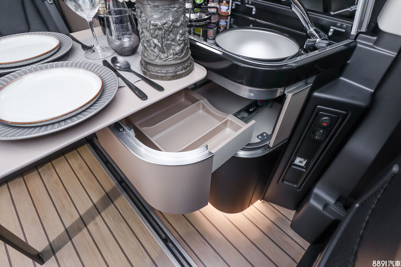 車內置物空間規劃堪稱完善,除了上述提到座椅底下的抽屜外,另設有衣櫃可以吊掛衣服、外套,車頂也備有置物櫃,用來收納枕頭、棉被等寢具。