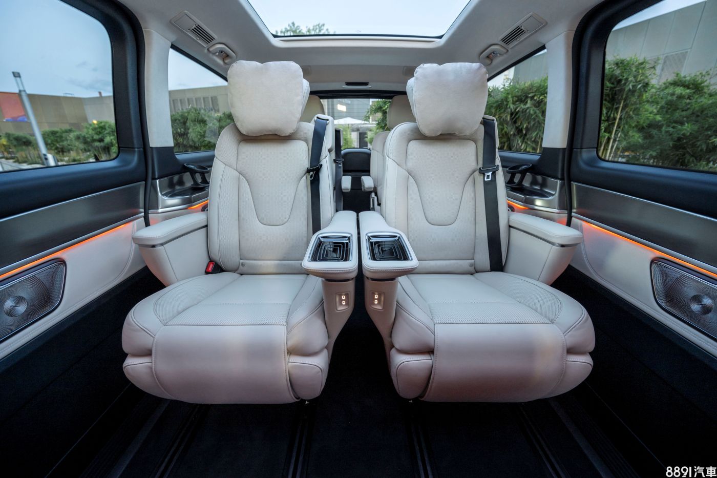 V 250d Exclusive第二排更採用頭等艙座椅,採用Nappa真皮鋪陳,搭配柔軟舒適的頭枕、腿靠與全電動調整機能,舒適性更勝一籌。