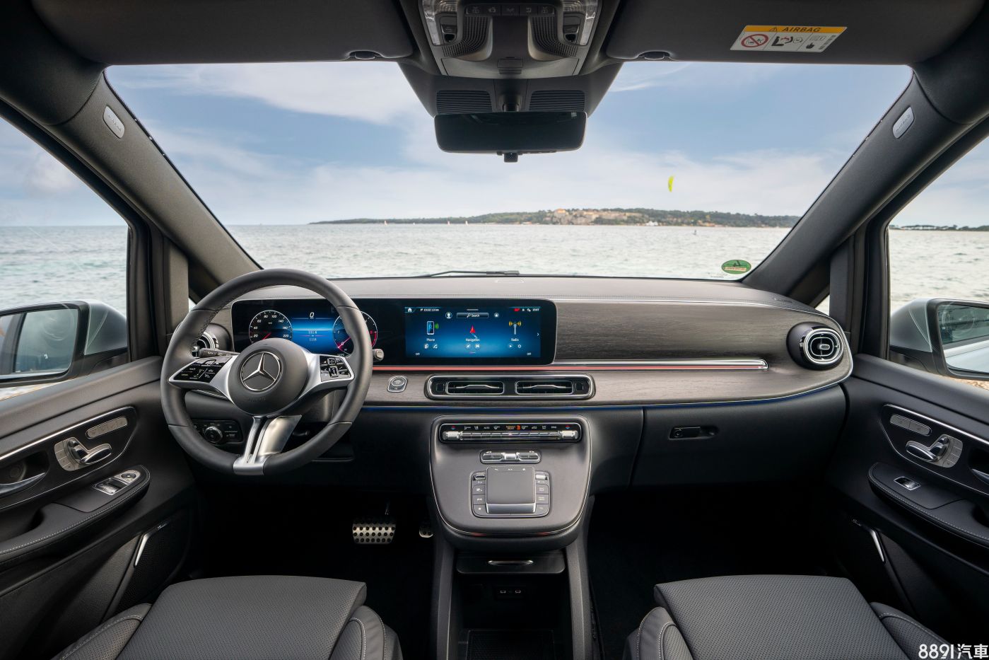 小改款V-Class全車系標配Keyless、雙12.3吋數位儀錶與MBUX 2.0多媒體系統,支援擴增實境導航與Mercedes Me Connect功能,科技感受更上層樓。駕駛輔助方面新增智能轉向輔助與主動車道維持,並標配多光束智慧型LED頭燈與9具氣囊,安全性大幅提升。