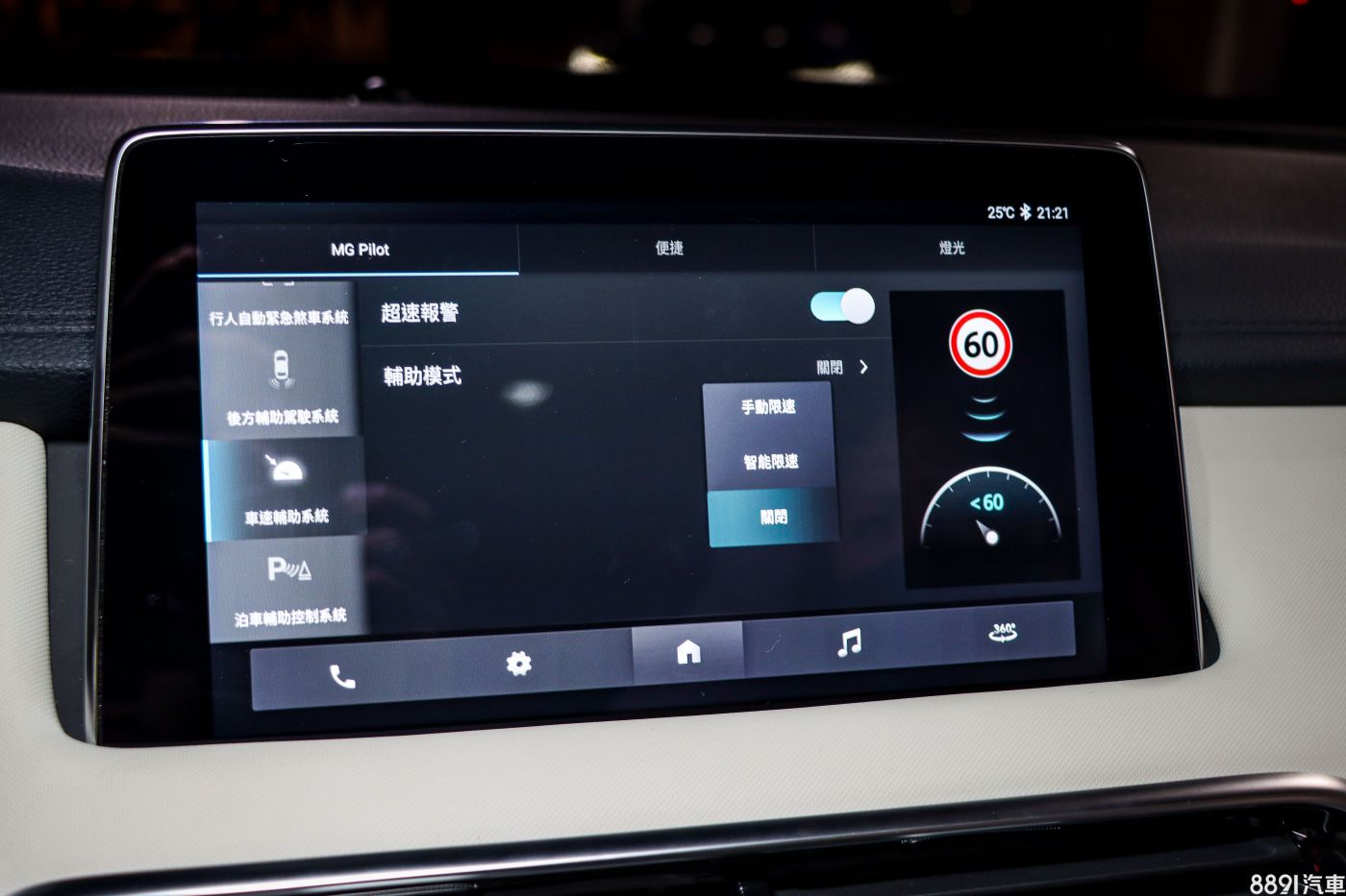 其中智能速限輔助,是當車輛超出速限時,發出警示,並透過限制動力輸出協助控制車速,可選關閉、智慧(系統辨識)、手動(自行設置時速限制)設定。