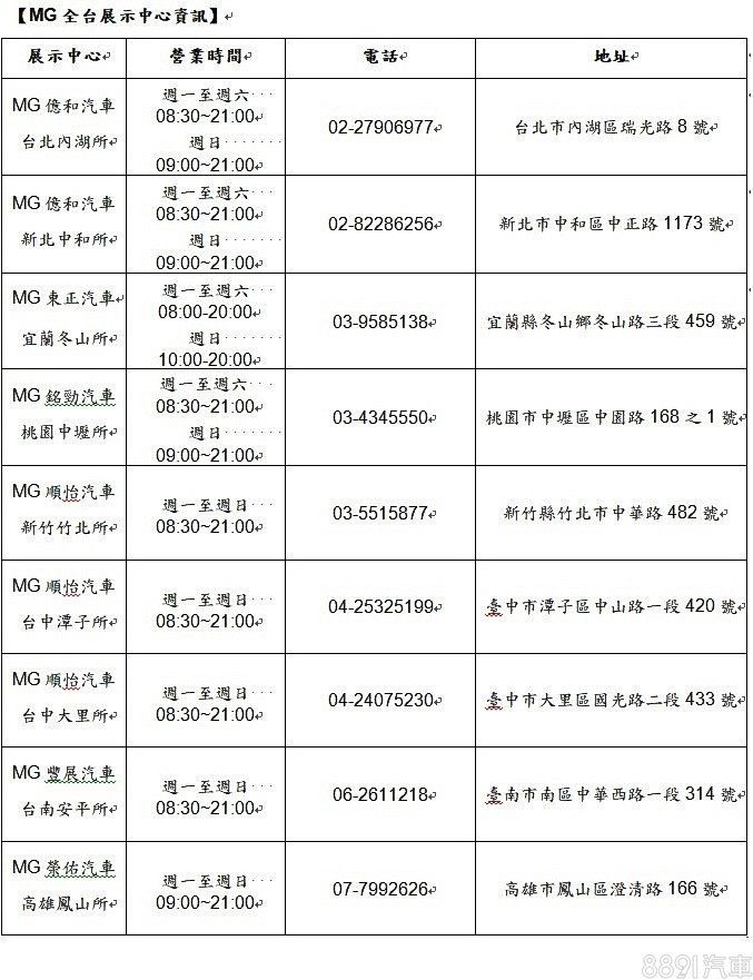 此外,台灣MG也同步公布,官網會在今日(9/13)下午14:00開始線上訂車與預約試乘服務,9/17全台九間展示中心正式對外營運,並展開店頭賞車與試駕活動。