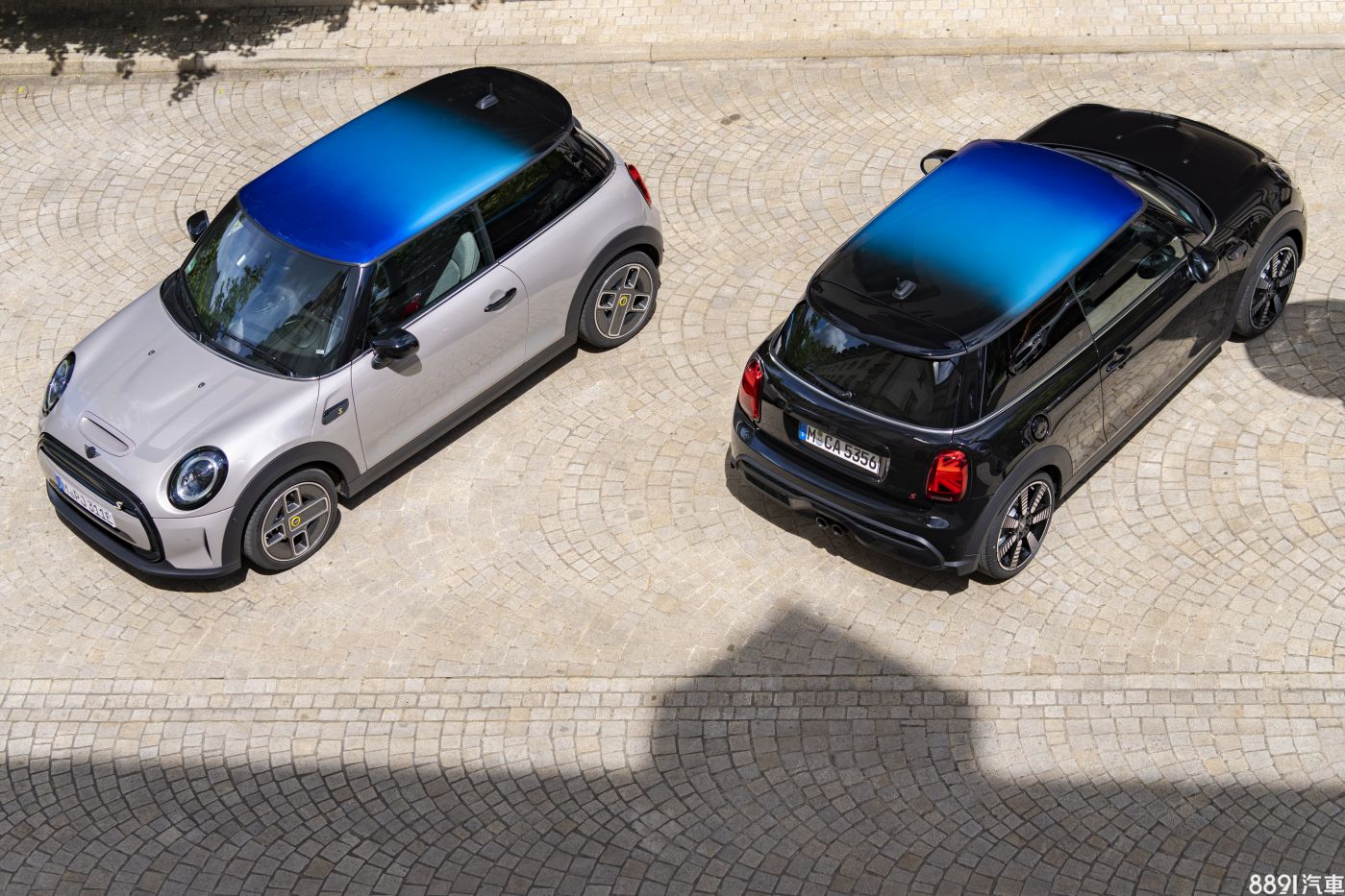 Mini全新設計的漸層色車頂,車頂前緣採用聖馬利諾藍(San Marino Blue)、中間搭配珍珠水藍、最後由深黑色收尾,透過三種色調層次堆疊,營造出視覺的流動感。