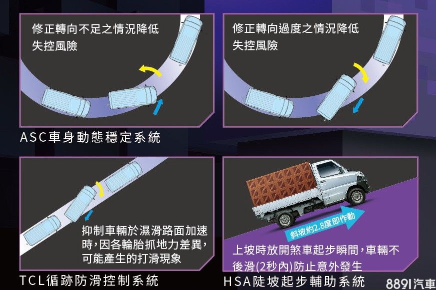 中華菱利這類輕型商用車俗稱「小發財」,便宜耐操是多數人的第一印象,不過現在已經不一樣了,生財工具不再和陽春劃上等號,除了標配ASC車身動態防滑系統與TCL循跡防滑系統,還有實用的HAS陡坡起步輔助系統,手排車型遇到上坡路段時,不必再擔心車輛起步會向後滑行,為頭家們出外打拼建構基礎防護,沒想到現在的貨車安全也做到這種程度!