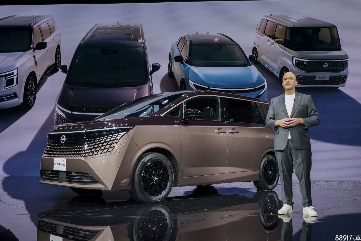 主舞台聚焦Elgrand,這款以Toyota Alphard作為競爭對手的MPV,在暌違15年之後,迎來全新第四代大改款,水箱罩格柵矩陣式排列,連LED日行燈也整合其中,靈感來自日本傳統工藝「組子(Kumiko)」的木片編織手法,帶來未來前衛的視覺印象。
