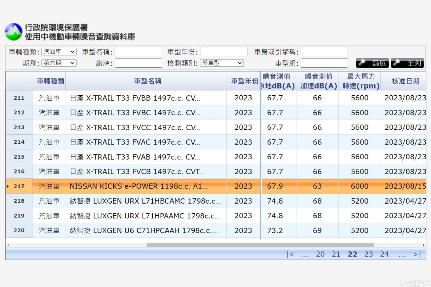 國內車輛安全資訊網(車安網)稍早更新了審查合格產品資訊,並在這波更新名單中列出了「Kicks e-Power」。另一方面,油電Kicks也出現在環保署噪音檢驗資料庫,送測資料也確認新車將採1.2升油電動力。