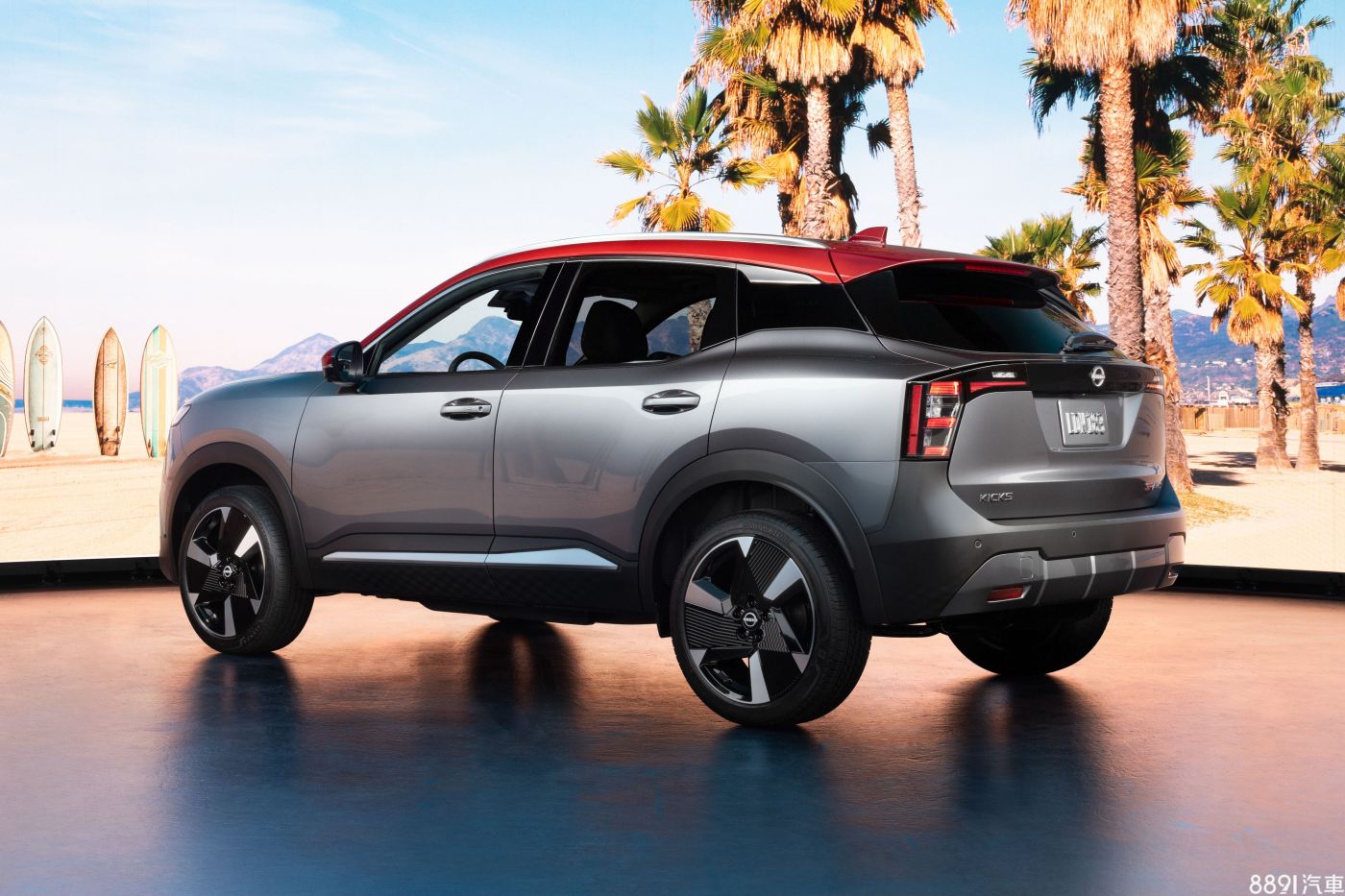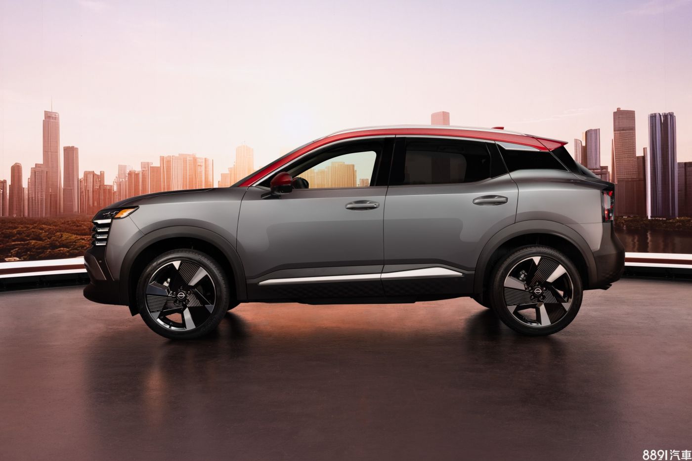 車側方面以水平腰線貫穿到底,但鈑件線條修飾得更加平滑,並同樣採用懸浮式車頂的招牌設計。官方公布新一代Kicks車身尺碼為4366×1801×1631mm、軸距為2657mm(AWD款為2664mm),相比上一代車型拉長也變寬,其中軸距增加了38mm,可預期座艙空間會更加寬敞。