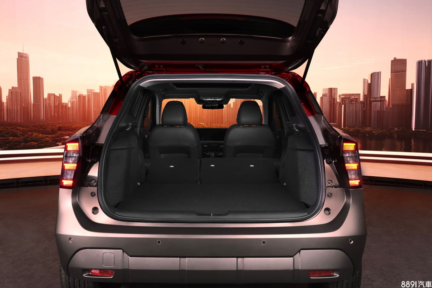 與舊款相比,新一代Kicks尾門開口寬度加大,對於置放長形物體時會更加便利,如圖所見,尾廂空間寬敞完整,後排座椅放倒後也十分平整。