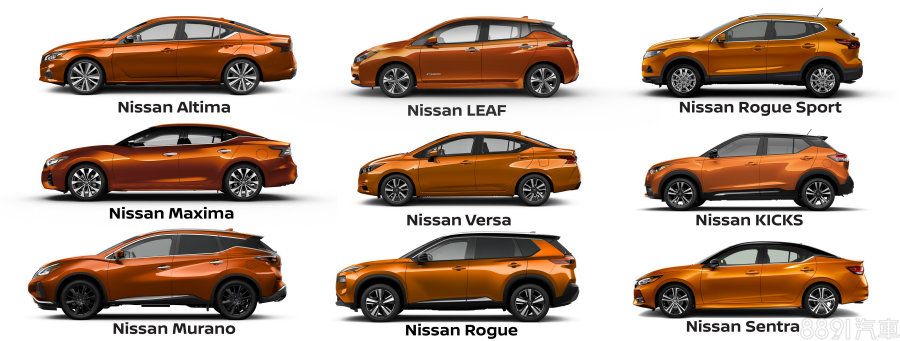 ●美國Nissan共有9款車提供橘色