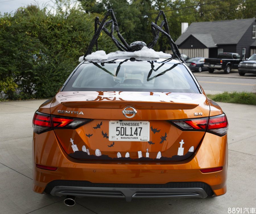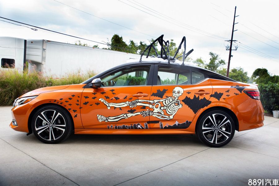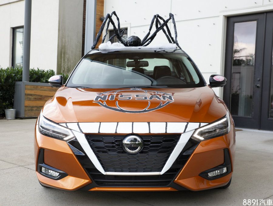 由美國Nissan展示的Sentra搞怪變裝車,就融入許多萬聖節元素,車頭望去除了引擎蓋上不可少的南瓜圖示外,水箱照周圍綴上類似吸血鬼的獠牙,而車頂上則聳立著一隻大蜘蛛!