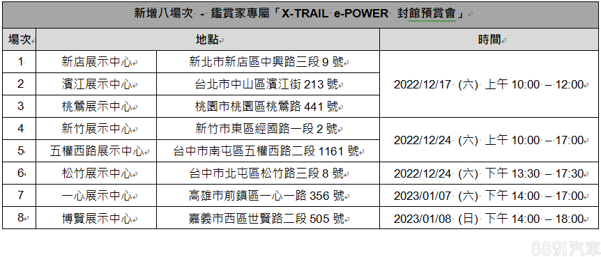 至2023/1/8日止,線上付費1千元的「Nissan e-Power鑑賞家」,可搶先鑑賞X-Trail e-Power實車,原廠已表示,首年首批配額600台,會依照下訂順序陸續交車。