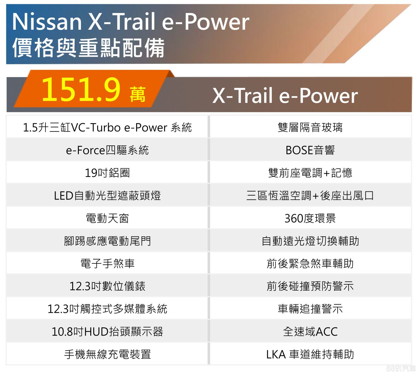 國內Nissan X-Trail終於跟進世代更新!新一代X-Trail於今(14)日正式在台發表,推出「e-Power旗艦版」單一車型,採進口導入販售,同時也是國內第一款e-Power油電車款,正式售價維持預售價格的151.9萬。