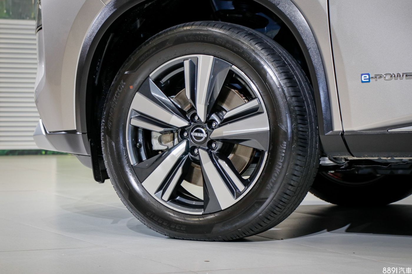新X-Trail配備19吋五輻雙色鋁圈,造型簡單俐落,搭配235/55R19的韓泰Ventus S1 evo3 SUV,是專為休旅車所開發的胎款。