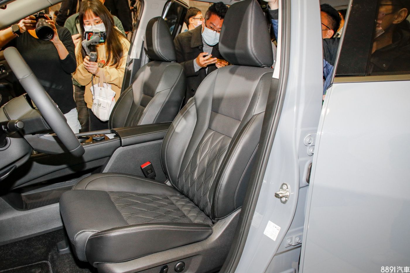 新款真皮座椅椅面加入菱格紋裝飾,雙前座皆具備電動調整、加熱與記憶功能,泡棉用料以舒適性為導向,皮料觸感滑順,乘坐感相當柔軟,椅墊長度足,不過兩側支撐若能更服貼腰側,支撐感會更到位。