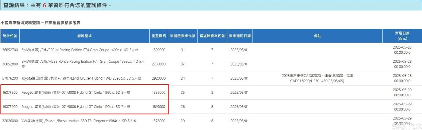 繼環境部汽車新車審驗資料更新後,Peugeot大改款3008與5008也接連登錄車安網與保發中心,而搶在國內上市之前,保發中心已率先將兩款休旅登錄在重置價格參考表中,同時也曝光了車型編成,雖說預估重置價格大多比正式售價略高一些,但也能讓有意入手的消費者心理有個底!