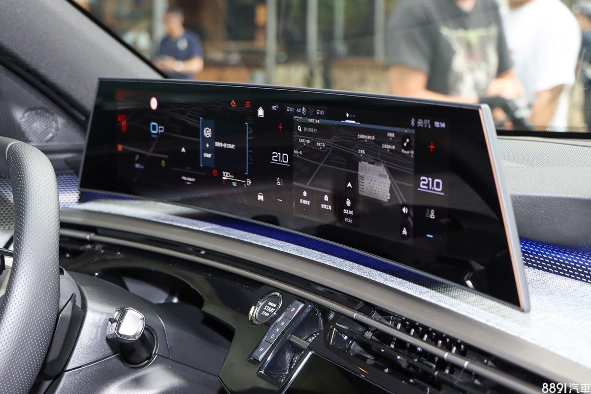 GT車型具備直立於中控台上的21吋曲面螢幕,內建新一代i-Cockpit系統,整合了數位儀錶、多媒體、空調系統和多項車輛設定功能,Apple CarPlay和Android Auto也都支援無線連接,並支援地圖、Google Maps導航。入門款則標配雙10吋數位介面。