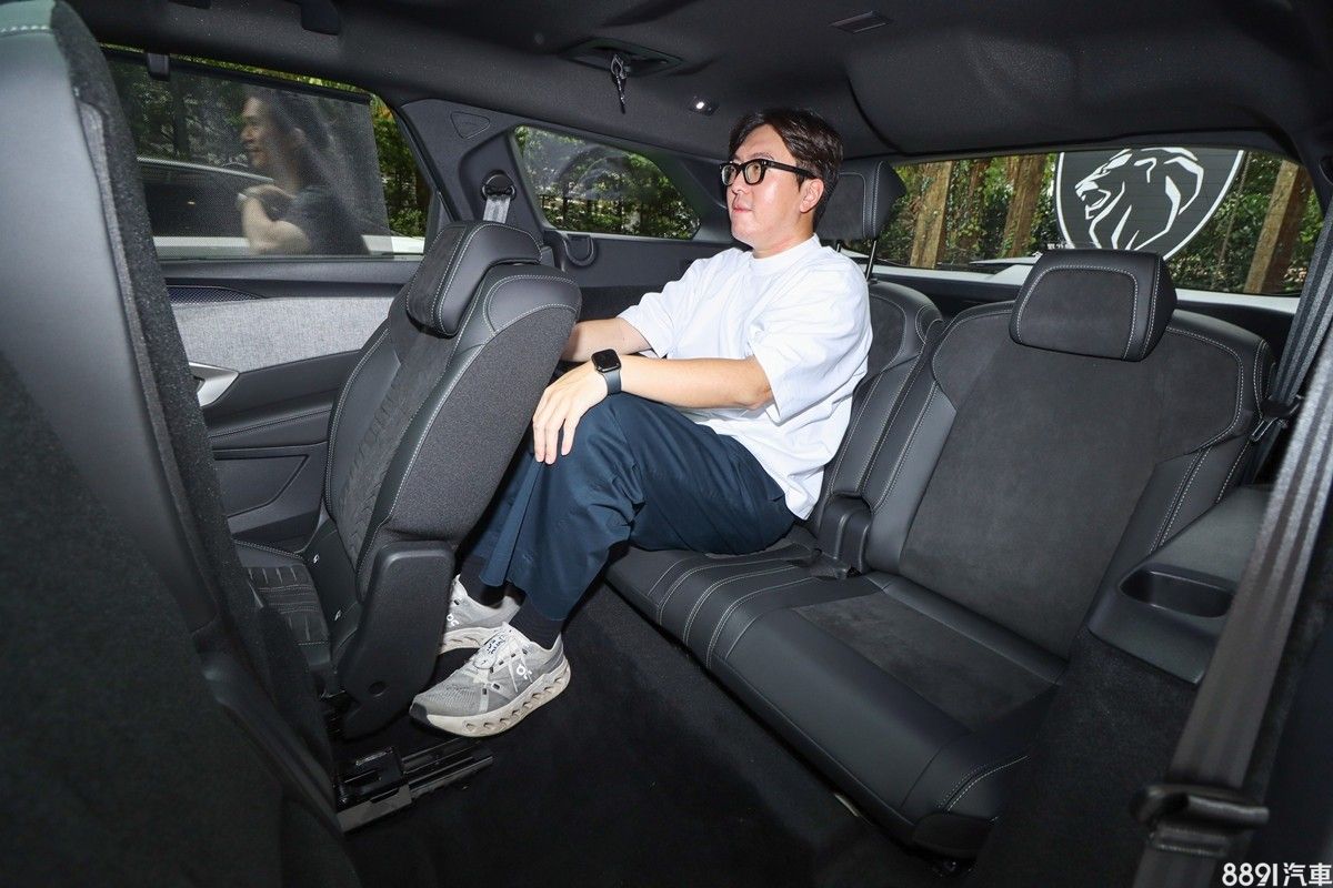 椅背可5/5分離傾倒的5008第三排,如配合第二排的滑移功能,依然能提供不錯的縱向空間,頭部空間表現也夠充裕,但由於座高過低,成人入座會呈微蹲坐姿,難免影響長途乘車舒適性。