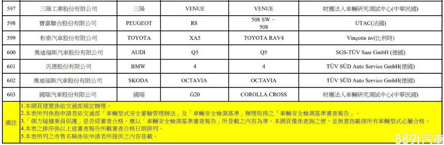 從車安網公佈的資訊來看,除了已登上名單的Nissan Sentra以及9月剛上市的現代Venue之外,國產車部分接下來尚有Toyota Corolla Cross等著上場,而和泰也在日前開始接單,分成雙動力、六車型,預售價自77.9萬起。