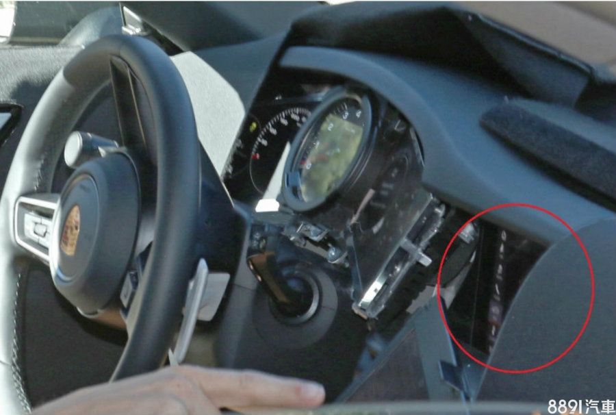 據先前的內裝間諜照,傳統的五環式儀錶除了中央轉速錶為實體指針,兩側將採用新Panamera與Cayenne的數位顯示方式,至於圖中的方向盤與現行款相同,正式版本應會換上新造型。