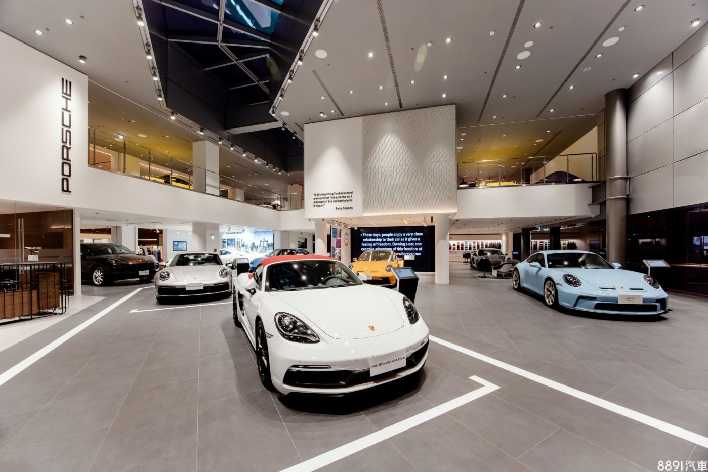 展示空間呈現開放的「Racing Line」設計風格,並搭配鋁製LED燈具結合金屬與木質裝飾,除了可陳列展示多部Porsche,也強調高科技數位化與個性化設計,冀望提供顧客沉浸式的品牌體驗。